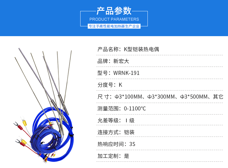 4、鎧裝熱電偶的熱響應(yīng)時間小,測量溫度變化反應(yīng)快,適用于電子計算機控制檢測場合。